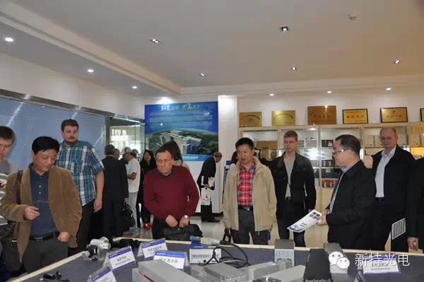 公司董事長陳義紅博士及相關負責人熱情接待了來賓。陳博士首先對俄羅斯激光代表團表示了熱烈的歡迎,并帶領參觀了新特展示廳,在聽取了陳博士對公司榮譽及 產品種類及特點的介紹后,俄羅斯代表團成員表示了極大的興趣,并對我司激光設備的各類配件均有涉及感到吃驚,表示希望有進一步的合作。